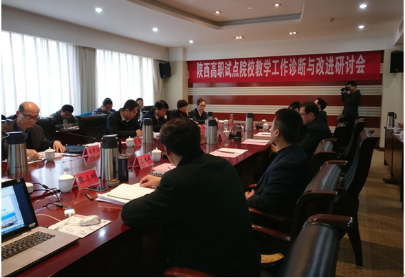 ,陕西高职试点院校教学工作诊断与改进研讨会在西安举行。省教育厅高教处处长胡海宁,全国职业院校教学工作诊断与改进专家委员会副主任委员、陕西高职院校诊改工作专家委员会主任委员崔岩出席会议。参与全国首批诊改试点的陕西交通职业技术学院、陕西铁路工程职业技术学院和我院的领导,诊改办、教务、人事处及平台负责同志等40余人参加会议。我院领导张晓云、刘永亮、梅创社、杨卫军携相关职能处室负责人一同参会。